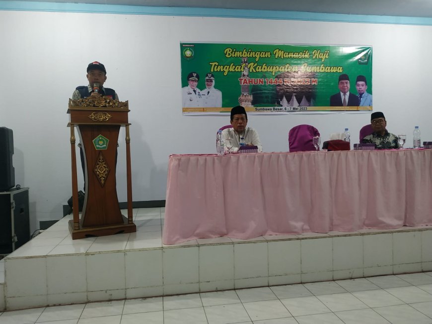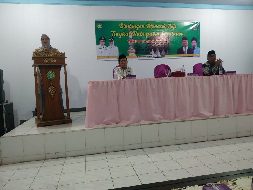 Sumbawa Besar.Amarmedia.co.id| 290 CJH Kabupaten Sumbawa ikuti Bimbingan Manasik Haji yang berlangsung di Hotel Dewi Sumbawa Besar, selama 2 hari Sabtu dan Minggu,(6-7/5/2023). Kegiatan yang dibuka oleh Wakil Bupati Sumbawa Hj Dewi Noviany SPd MPd dihadiri oleh Sekda Sumbawa Drs.H.Hasan Basri., MM, Asisten Pemerintahan H.Varian Bintoro, S.Sos.,M.Si, Kepala Kantor Kemenag Sumbawa H.Muksin, SH., M.Pd.I, Kasi PHU Ustadz Ardi Suzami, SE.I., MM.Inov, Kasi PAIS H.Suryanto, S.Ag, Petugas Kloter, para CJH dan segenap Panitia pelaksana.