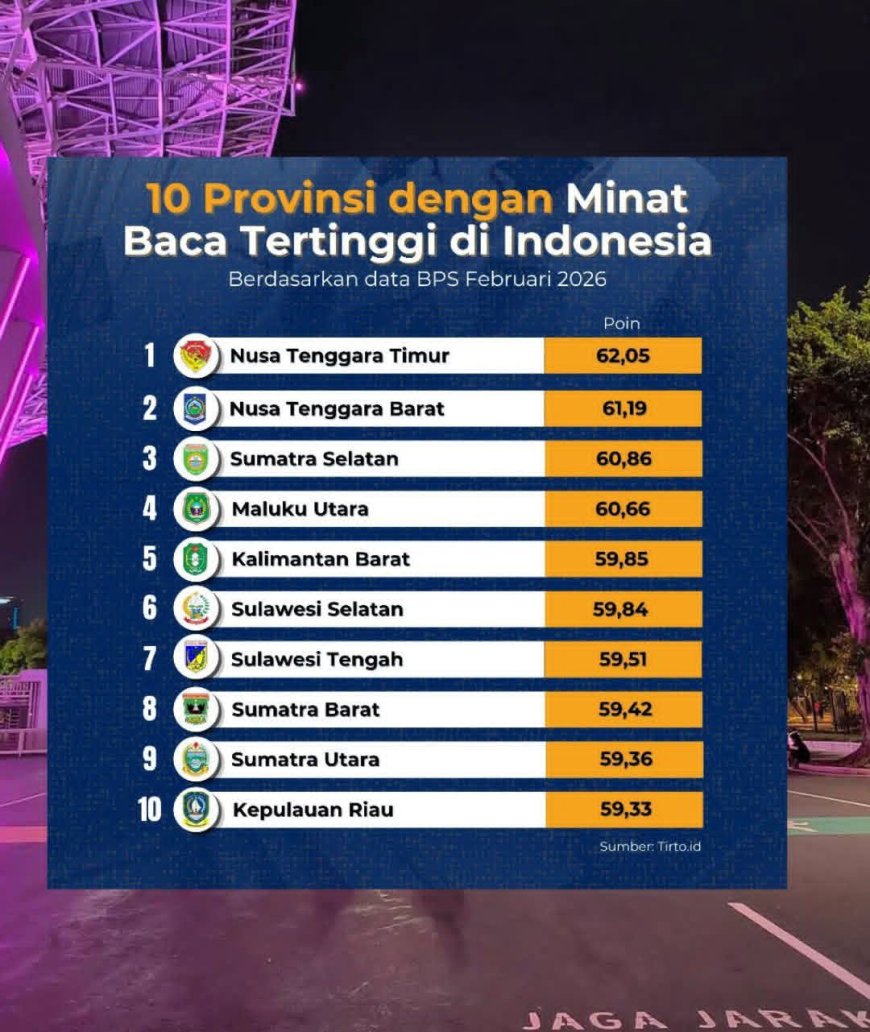 Barangkali yang paling menarik dari data ini bukanlah siapa yang berada di peringkat pertama. Melainkan pesan yang tersirat di dalamnya: bahwa membaca bisa tumbuh di mana saja. Tidak harus menunggu sempurna. Tidak perlu menunggu lengkap.