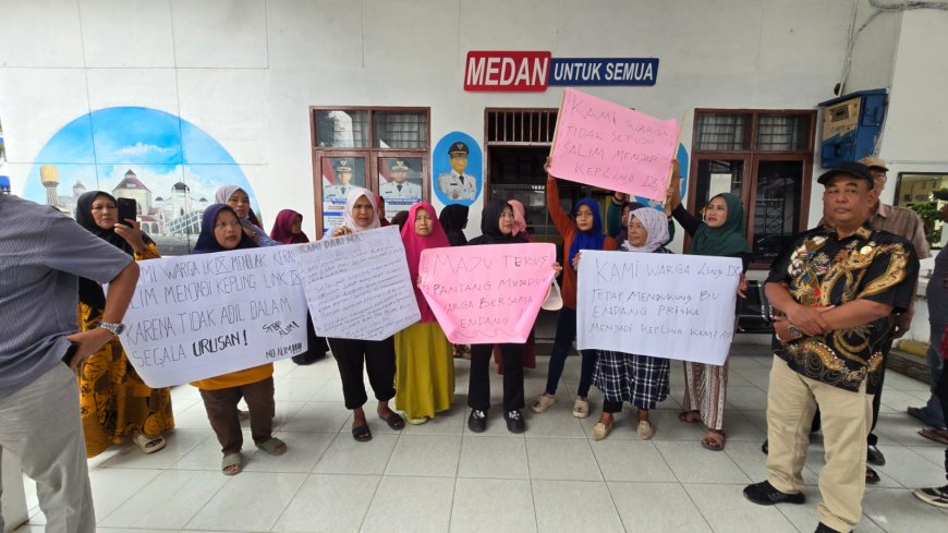 Medan,Amarmedia.co.id - Emak emak warga Perwira II, Lingkungan IX, Kelurahan Pulo Brayan Bengkel, Kecamatan Medan Timur geruduk Kantor Camat Medan Timur Jalan HM Said, Medan, Jumat (6/3) pagi. Warga menolak pengangkatan M Salim sebagai Kepala Lingkungan (Kepling) IX karena sebelumnya M Salim pernah menjabat sebagai Kepling IX namun tidak amanah dan mengecewakan warga.