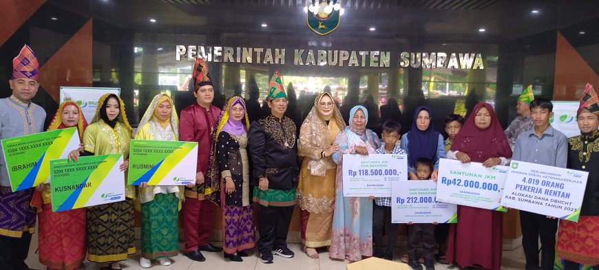 Pemda Sumbawa juga memberikan santunan BPJS ketenagakerjaan sebanyak 3 orang tenaga kerja atas nama Zainuddin kategori pekerjaan mandiri dengan nama ahli waris Umi Hartati lantunan DKM sebesar Rp.70 juta dan beasiswa untuk dua orang anak senilai Rp 14 juta, kemudian kepada Abdul Wahab sebagai perangkat RT Desa Labuhan Badas dengan nama ahli waris rabiatul dengan santunan DKM sebesar 42 juta dan ketiga diberikan kepada Baharudin sebagai tenaga kerja non ASN dengan nama ahli waris Nurlaila dengan santunan DKM 42 juta dan beasiswa itu anak sebesar 76.500.000