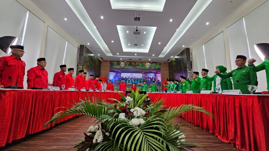 Mars PDIP dan PPP terlantun sebelum kedua elite parpol menjalin pertemuan yang diagendakan secara tertutup bagi awak media.