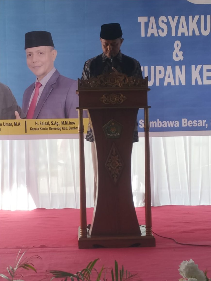 Dalam sambutan singkatnya Kepala Kantor Kemenag Sumbawa H Faisal SAg.M.M.Inov menyampaikan terimakasih kepada Bupati Sumbawa sekalian menyampaikan apresiasi kepada seluruh Panitia. "Seluruh kegiatan mulai dari pawai ta'ruf, kegiatan olah raga, upacara hingga acara Tasyakuran yang di laksanakan pada hari ini dalam rangka memeriahkan HAB ke 79 Kementerian Agama RI Kabupaten Sumbawa, secara keseluruhan berjalan dengan baik, sukses dan lancar" ujar H Ecang akrab disapa.